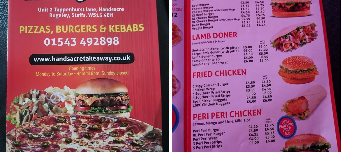 Discover delicious fast food at The Handsacre Takeaway in Rugeley! Enjoy tasty meals at unbeatable prices, conveniently located at 4EH, 2 Tuppenhurst Ln. Satisfy your cravings today!